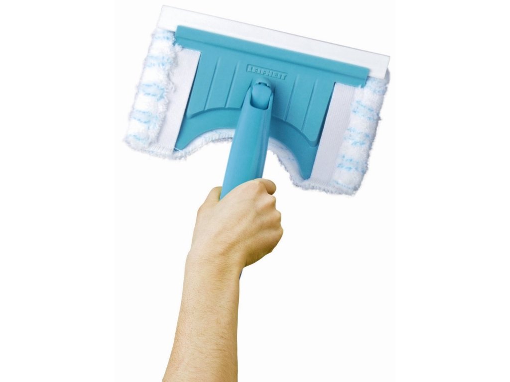 Mimo gumovou část stěrka Leifheit disponuje utěrkou z mikrovlákna