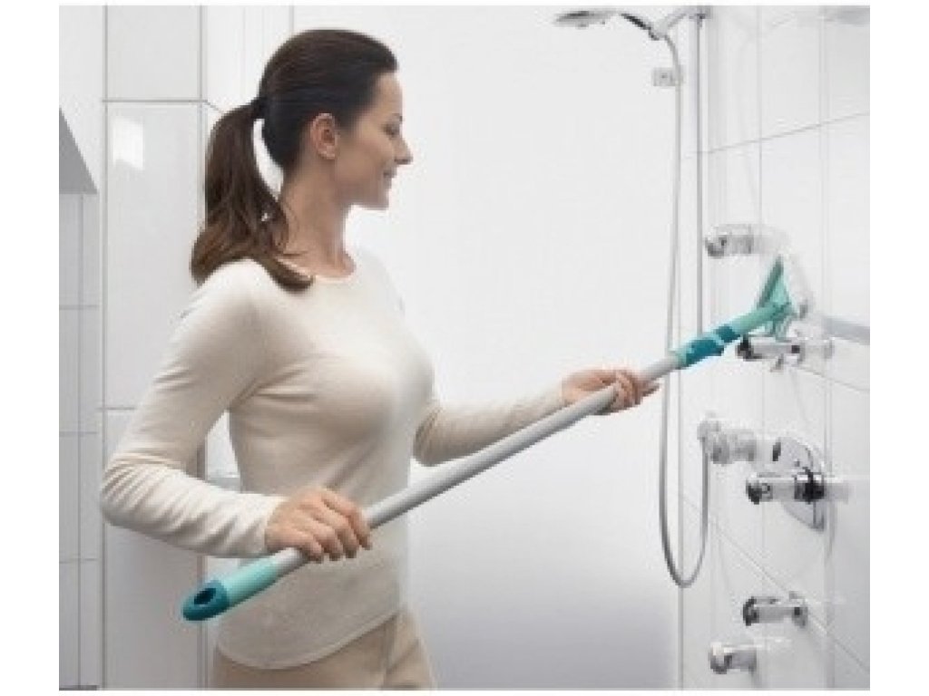 Praktická stěrka s houbou z mikrovlákna přitahuje a zachycuje všechny nečistoty. Hodí se pro mytí sprchových koutů, van a obkladů v koupelně. Stěrku lze připevnit k tyči z řady Leifheit Click System.