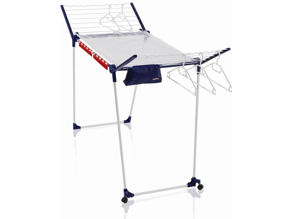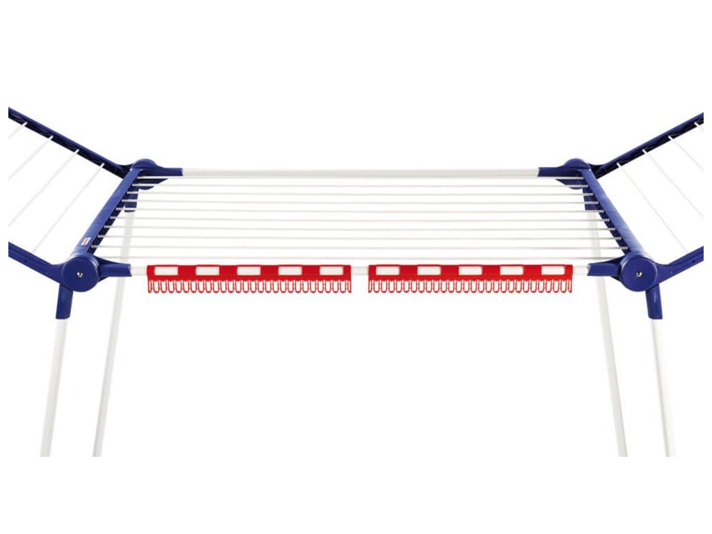 Výrobek disponuje kromě hlavní velké plochy také mechanismem easyclip pro sušení drobného prádla a 5 ramínkami na oděvy, jež je možné zavěsit na zvlněné okraje bočnic. Tento praktický sušák si poradí až se dvěma pračkami prádla! Skvěle se hodí do každé větší domácnosti.