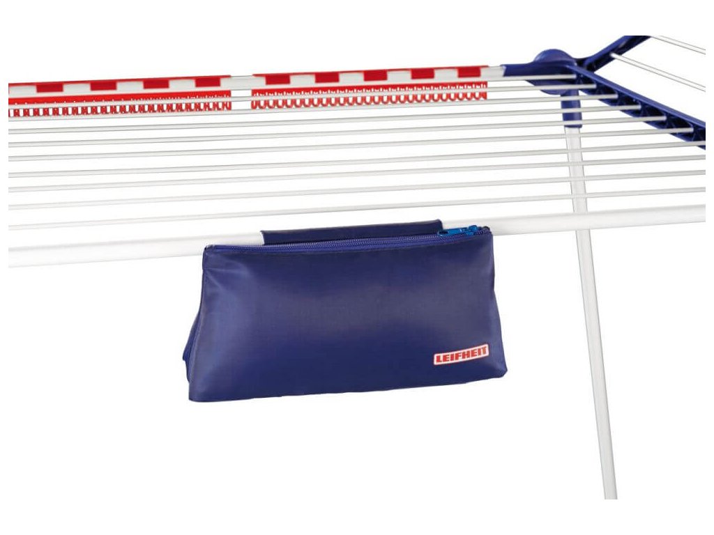 příslušenství: 5x větru odolné ramínko s fixační drážkou, 2x držák na drobné prádlo, 1x taštička na kolíčky, 1x síťka na sušení jemného prádla ve vodorovné poloze (vhodná např pro svetry a jemné úpltety)