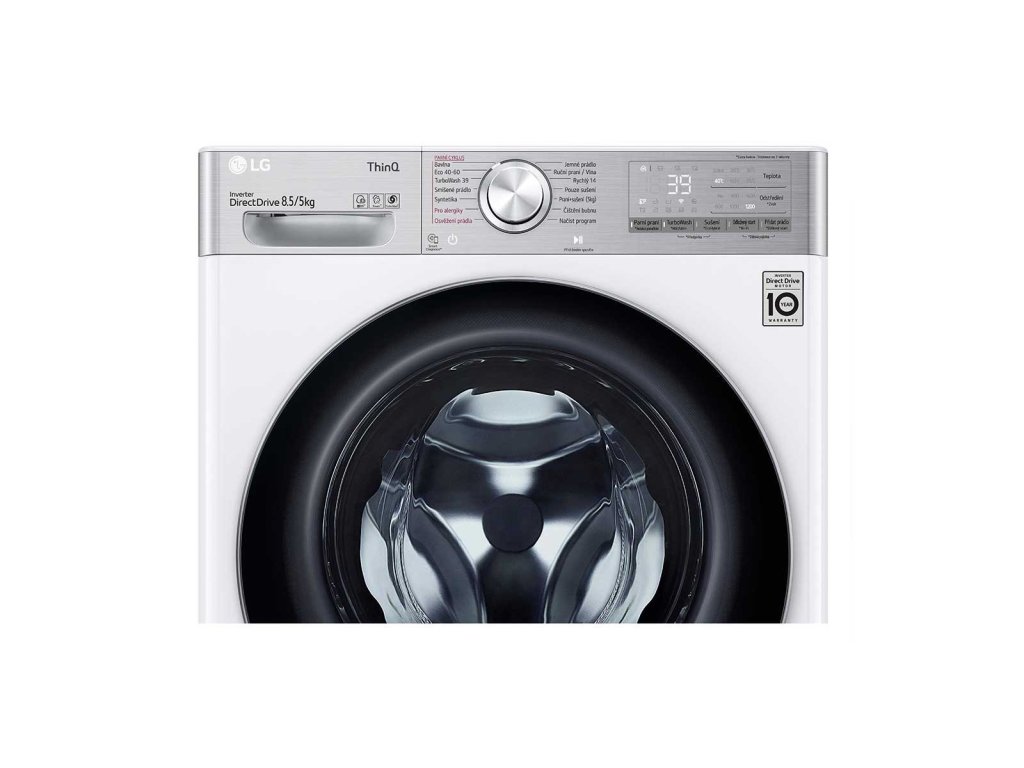 Inverter Direct Drive motor – 10 let záruka, AI DD – optimální volba pracích pohybů, Steam+ parní péče a redukce pomačkání, TurboWash 360° - praní za 39 minut, ThinQ + Wi-Fi – načtení programu a inteligentní diagnostika
