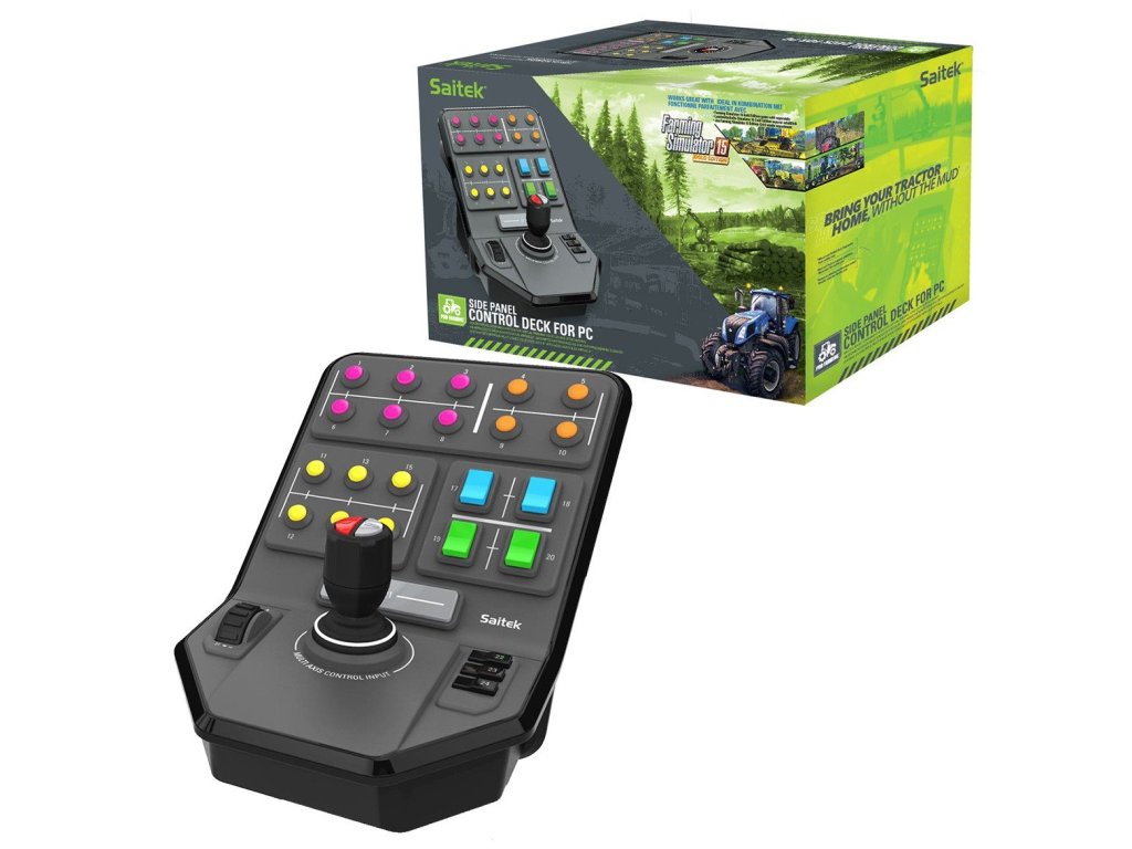 Praktické ovládací prvky pro ovládání farmáře. Herní situace si žádají ovládací páky a tlačítka, a tento volant je jimi plně vybaven. Dvojité ovládací páky, každá vybavená tlačítkem pro stisknutí, jsou ideální pro pohyb postav a ovládání kamery. 4směrný kloboučkový přepínač poblíž obou ovládacích pák poskytne osm doplňkových tlačítek pro vaše potřeby. Na zadní straně panelu se nacházejí dvě ergonomická tlačítka, podobná spouštím. Vše navíc můžete snadno ve hře naprogramovat.