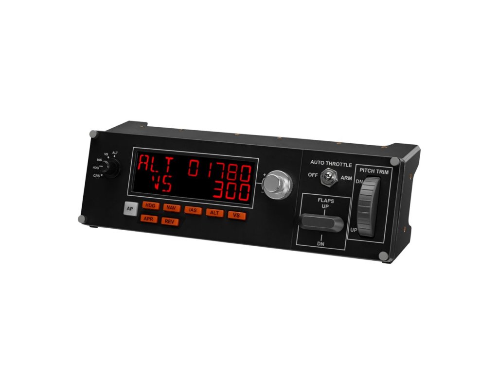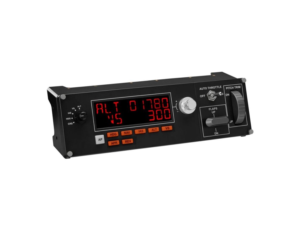 Na palubě vás vítá displej LED tohoto plnohodnotného autopilota, který funguje v reálném čase s většinou leteckého simulačního softwaru. Neztrácejte čas s titěrnými ovládacími prvky na obrazovce – panel je připraven k instalaci do systému beranů Logitech G Flight Yoke System nebo vlastní sestavy kokpitu. Pro rychlejší výběr je panel vybaven integrovaným otočným voličem pro nastavení frekvence. Doplňkové funkce umožňují snadné nastavení plynu, klapek a náklonu výškovky vašeho letounu.