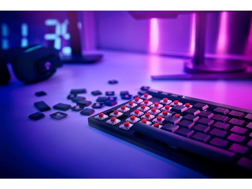 kompaktní herní klávesnici jsou z výroby promazány pro hladší pocit, rychlou aktivaci a přesné psaní. 36 hodin hraní: Bezdrátové hraní s výdrží baterie až 36 hodin. Výdrž baterie závisí na podmínkách používání. Přizpůsobení na vyšší úrovni: Pomocí funkce KEYCONTROL mohou hráči naprogramovat až 15 funkcí na každou klávesu, a přizpůsobit si tak herní zážitek a vytvořit si osobní ovládací centrum. Kryty kláves z PBT: Krytky kláves z dvojitě vstřikovaného PBT nabízejí odolnost pro nejintenzivnější okamžiky hraní a vypadají stejně dobře jako fungují díky designu zabraňujícímu zašpinění a příjemnému na