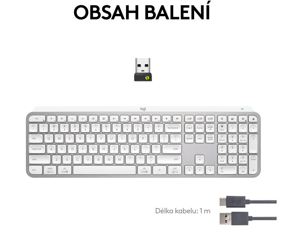 Logitech klávesnice Wireless MX Keys S, US, INTL, bezdrátová, Pale Grey, Bolt