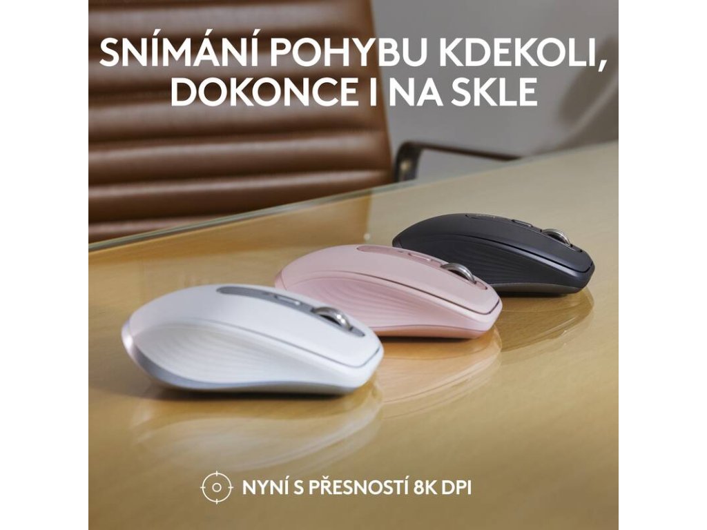 Pracujte na libovolném povrchu, dokonce i na skle, s myší MX Anywhere 3S – nyní se snímačem s rozlišením 8K DPI, takže jemnými pohyby pokryjete více prostoru.