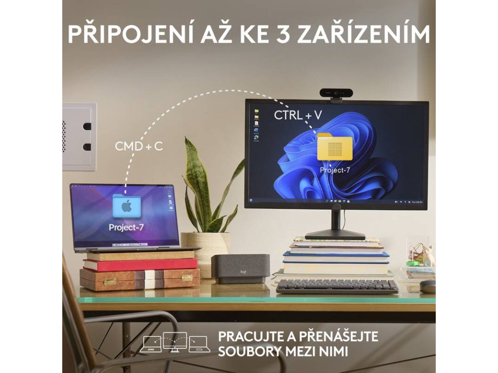 Připojte se až ke 3 zařízením prostřednictvím Bluetooth v systémech Windows, macOS, ChromeOS nebo Linux. Kompatibilní pouze s přijímačem Logi Bolt USB (přijímač není součástí dodávky)