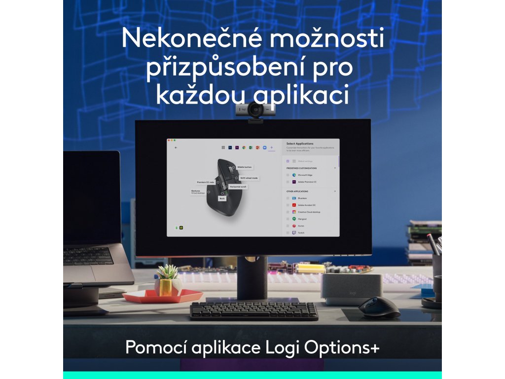 myš laserová s technologií Darkfield, bezdrátová, 200-8000dpi, nabíjení pomocí USB-C kabelu, magnetické kolečko s funkcí velmi rychlého posuvu, funguje i na skle, dosah až 10m, Graphite