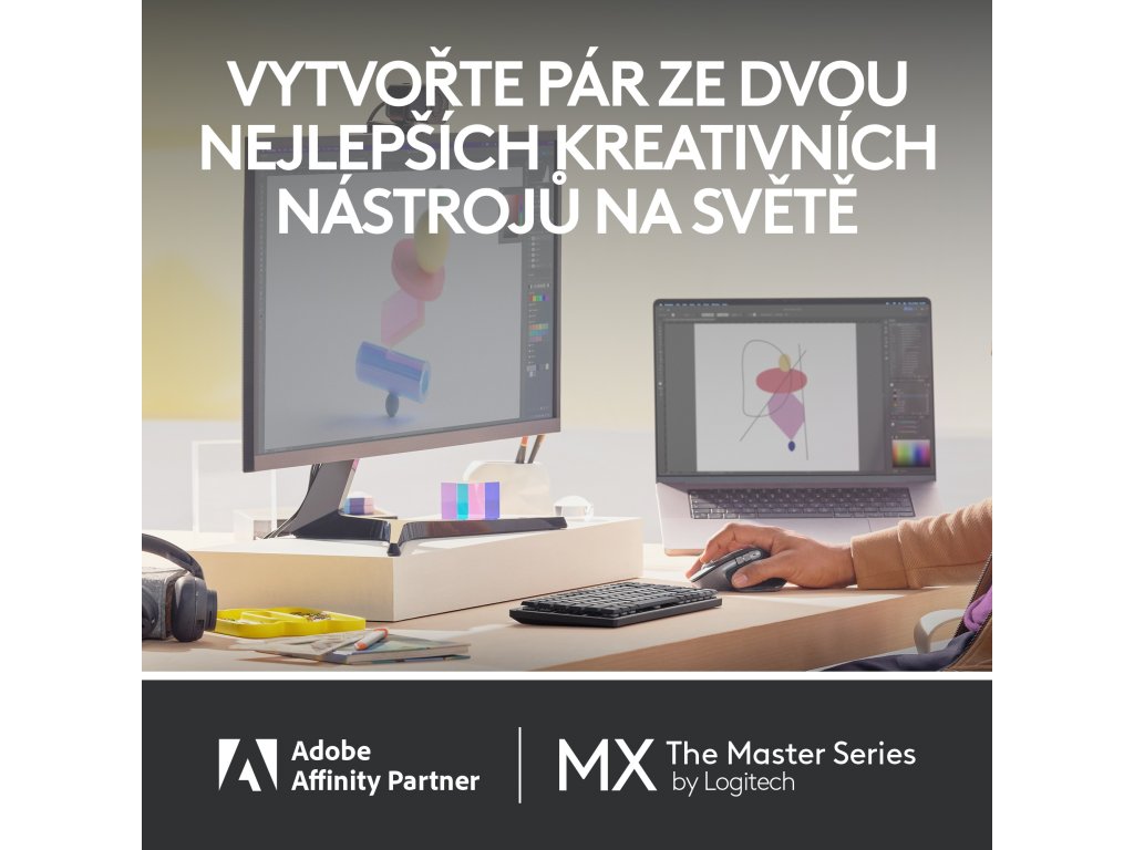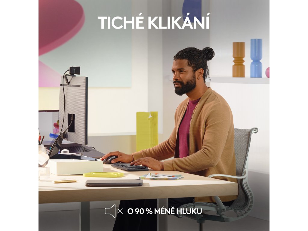 Tvořte a pracujte se stejnou odezvou při kliknutí, avšak nižší hlučností. Funkce tichého klikání přináší uspokojující, jemnou hmatovou odezvu, s hlukem kliknutí sníženým o 90 % ve srovnání s modelem MX Master.