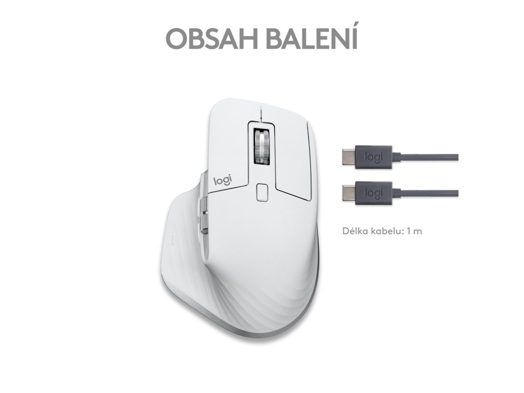 Myš MX Master 3S for Mac vydrží na plné nabití fungovat až 70 dní – a rychlé nabití po dobu jedné minuty zajistí energii na tři hodiny používání. Pro dobíjení energie využijte přiložený nabíjecí kabel USB-C na USB-C.