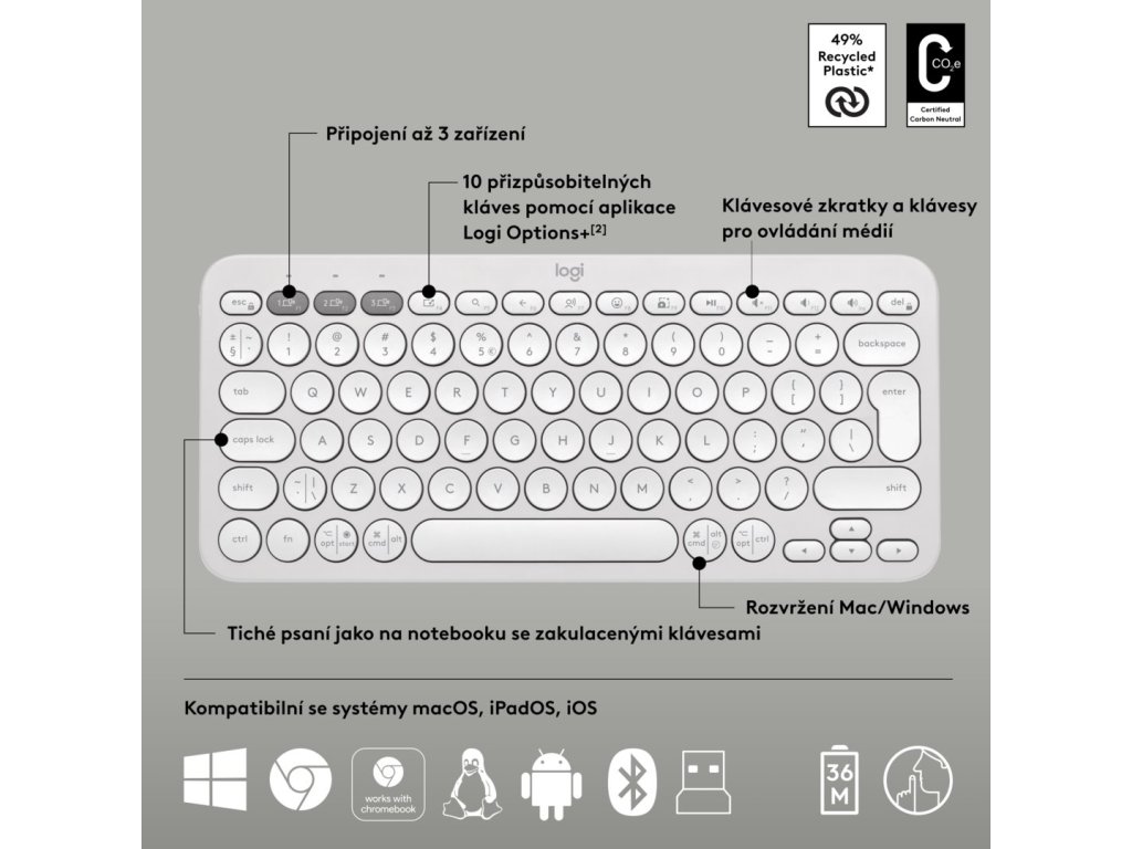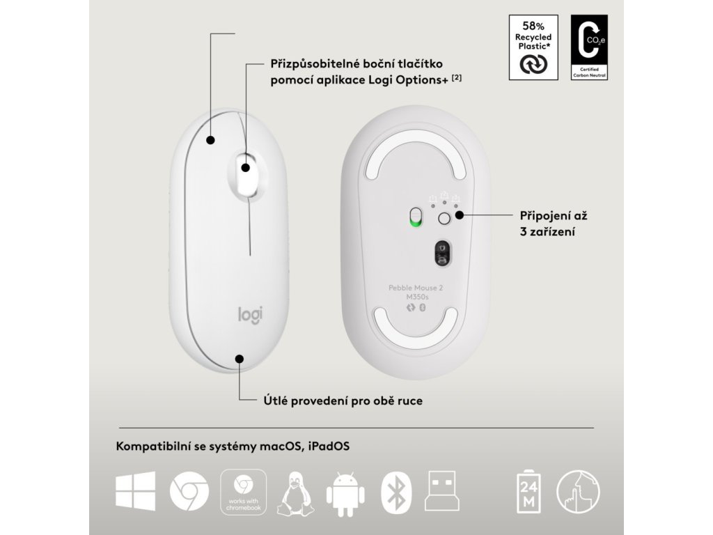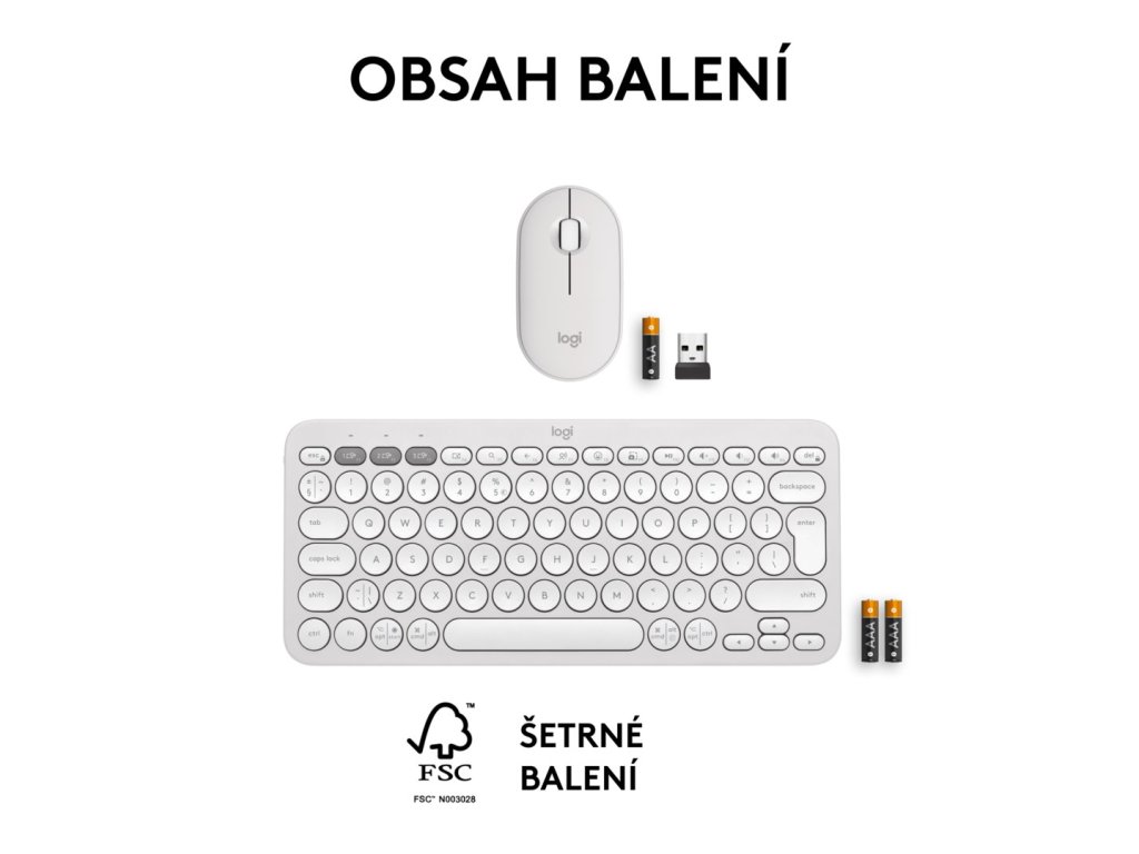 Logitech Pebble 2 Combo, bezdrátová klávesnice a myš, bílá