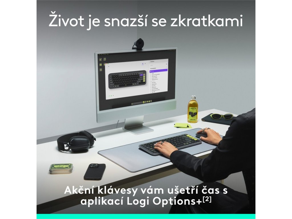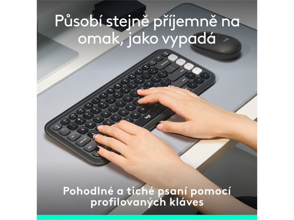 Oživte svůj stůl pomocí bezdrátové klávesnice POP Icon Keys, kompaktní klávesnice s výraznou estetikou, pohodlným psaním a přizpůsobitelnými akčními klávesami. Udělejte si pohodlí s tvarovanými, nízkoprofilovými klávesami pro pohodlné a tiché psaní.