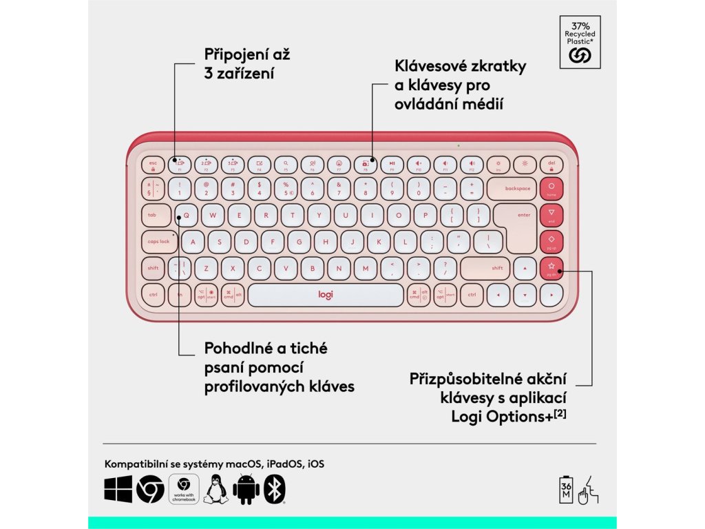Oživte svůj stůl pomocí bezdrátové klávesnice POP Icon Keys, kompaktní klávesnice s výraznou estetikou, pohodlným psaním a přizpůsobitelnými akčními klávesami. Udělejte si pohodlí s tvarovanými, nízkoprofilovými klávesami pro pohodlné a tiché psaní.