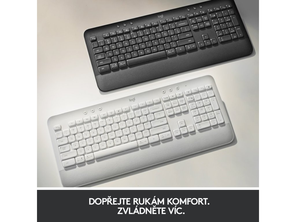 Ulehčete si život a dopřejte si pohodlí potřebné pro dlouhé hodiny práce u stolu. Klávesnice Signature K650 byla navržena s funkcemi, které zajišťují pohodlí a produktivitu. Díky vylepšeným zkratkám, integrované opěrce dlaně a hluboce tlumenými klávesám je klávesnice Signature K650 vybavena tak, aby vám pomohla zvládnout všechny vaše každodenní potřeby a zároveň poskytovala pohodlí po celé hodiny.