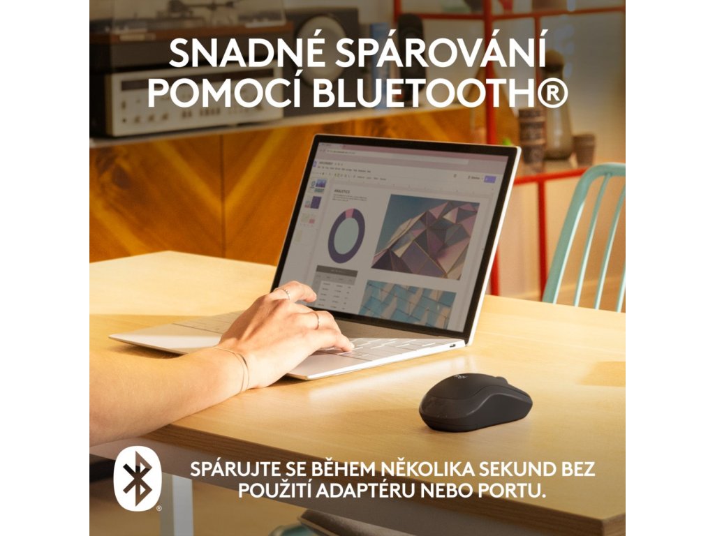 Díky rychlé a nenáročné bezdrátové technologii Bluetooth je připojení této tiché bezdrátové myši otázkou několika sekund – není vyžadován žádný adaptér ani port