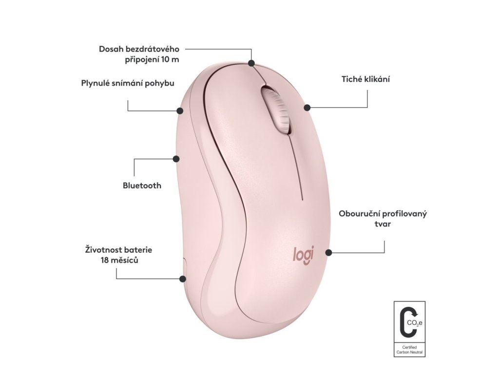 Logitech Wireless M240 Silent růžová, nano, optická myš bezdrátová