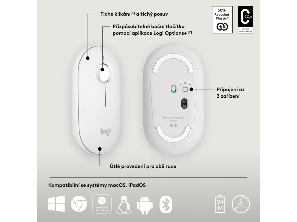 Logitech Wireless Pebble mouse 2, M350s, bílá