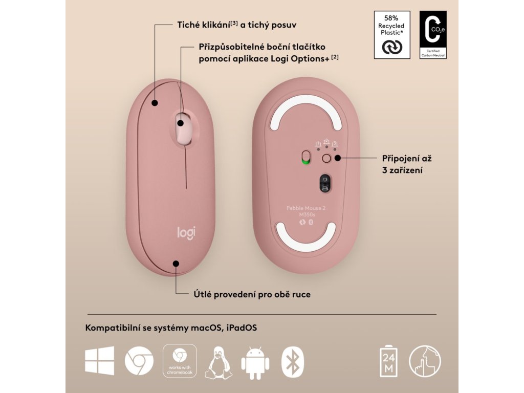 Logitech Wireless Pebble mouse 2, M350s, růžová