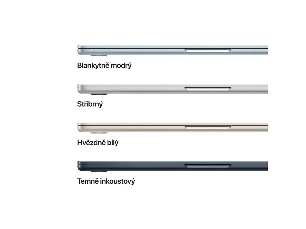 Apple MacBook Air 13 - Apple M4 (8jádrový), 13,6" IPS lesklý 2560 × 1664 px, RAM 16GB, Apple M4 8jádrová GPU, 256GB SSD, podsvícená klávesnice, webkamera, hmotnost 1,24 kg, macOS.
