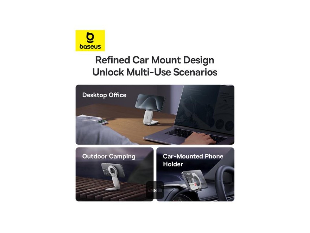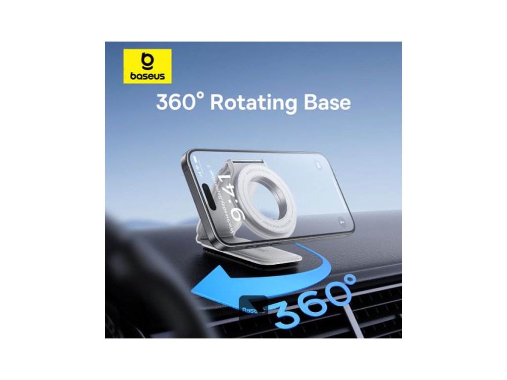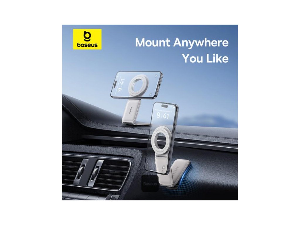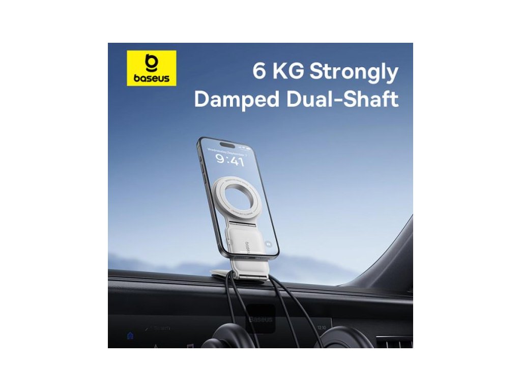 Držák do auta Baseus C02 Prime Trip, uchycení na palubní desku, magnetické uchycení MagSafe,univerzální kompatibilita s dalšími magnetickými kroužky,zpracování z kovu a kůže,základna otočná o 360° a skládací konstrukce ve dvou osách, barva bílá