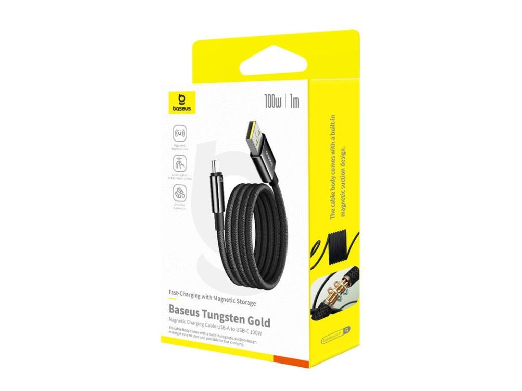 Magnetický nabíjecí kabel Baseus Tungsten USB/USB-C 1m 100W černý