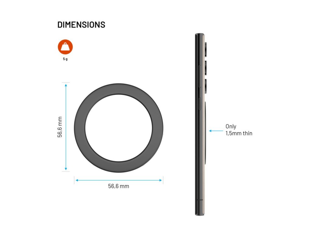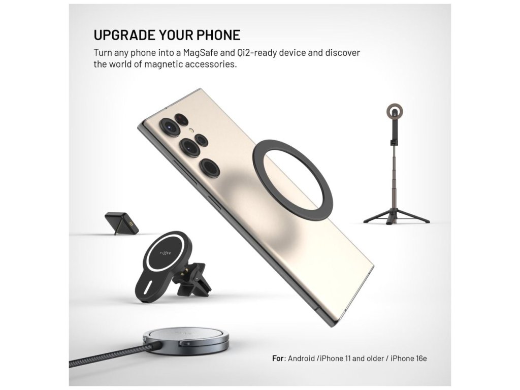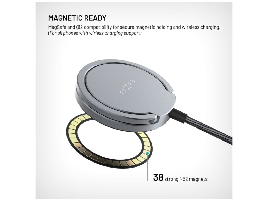 Magnetická nálepka FIXED MagPlate dokáže váš telefon upravit tak, aby fungoval s doplňky kompatibilními s MagSafe technologií. Představuje tak chytrý doplněk pro starší modely Apple iPhone i další smartphony s bezdrátovým nabíjením. Po instalaci samolepky na záda telefonu nebo na ochranný kryt můžete telefon bez problémů připojit k MagSafe nabíječkám, držákům, powerbankám a dalšímu MagSafe příslušenství. Samotná nálepka drží velmi pevně díky 3M samolepce a ukrývá v sobě 38 kvalitních neodymových magnetů, přesto je tenká pouze 1,5 mm.
