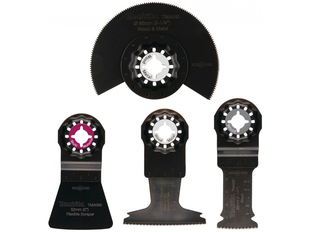 Sada obsahuje pilový kotouč 85mm BiM B-64799, pilový list rovný 65x40mm BiM B-64820, pilový list rovný 32x50mm HCS B-64858 a škrabku 52x40mm HCS B-64995.