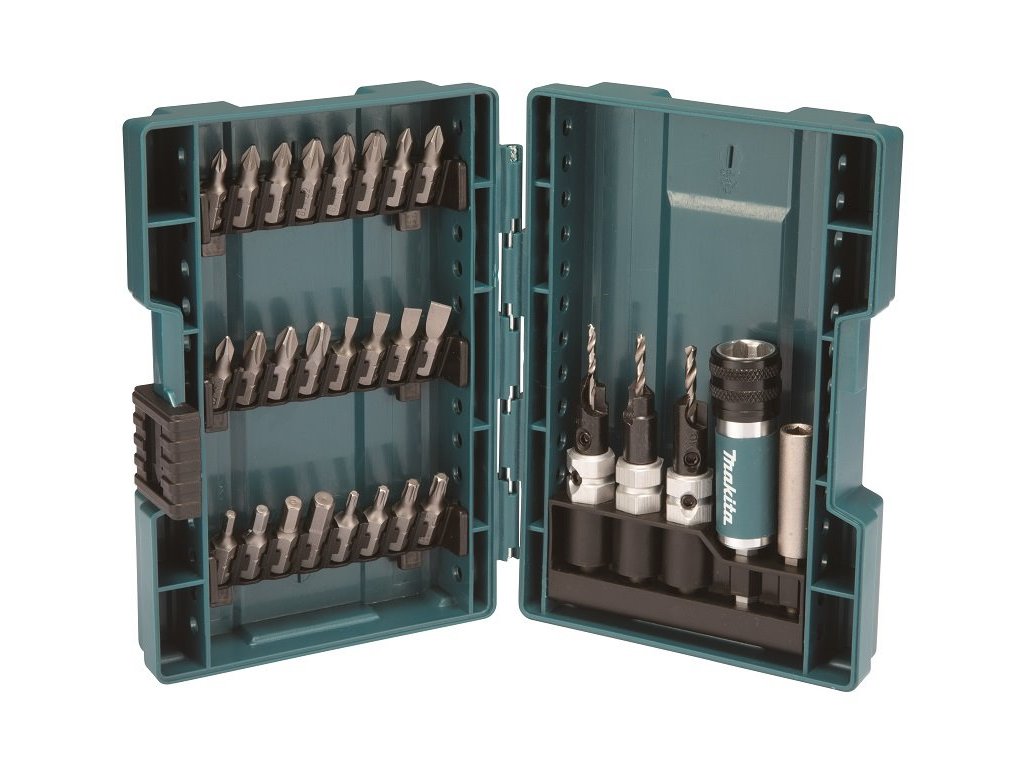 Sada bitů 29 ks v plastové krabičce Obsahuje bity 25 mm PH0, 2xPH1, 2xPH2, PH3, PZ0, 2xPZ1, 2xPZ2, PZ3, T10, T15, T20, T25, HEX3, HEX4, HEX5, HEX6, SL3, SL4, SL5, SL6, držák bitů, 3xvrták se záhlubníkem a vedení šroubů 1/4".