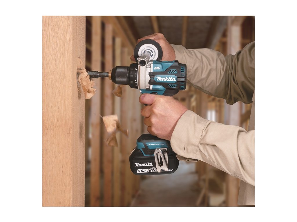 Kompaktní aku vrtací šroubovák (18V) s bezuhlíkovým motorem • Tvrdý krouticí moment 63 Nm (13 stupňů) • Dvourychlostní (max 2100 ot/min) • Délka hlavy 166 mm pro stísněné prostory • Rychloupínací sklíčidlo 13 mm • KickBack Control a duální LED osvětlení
