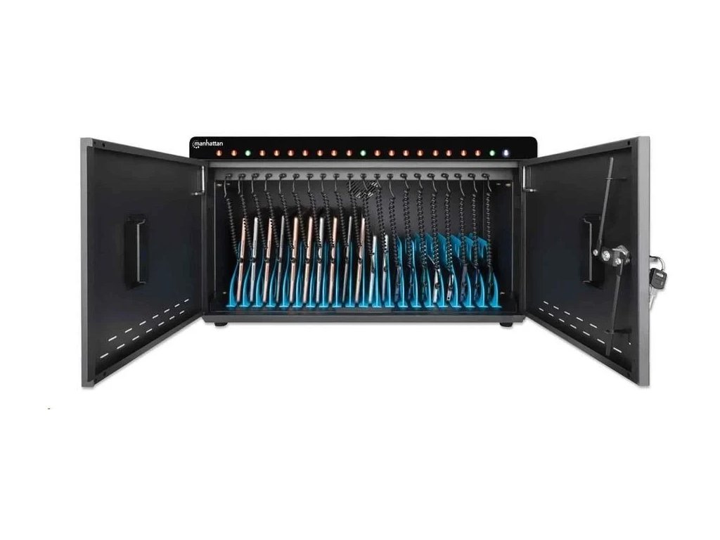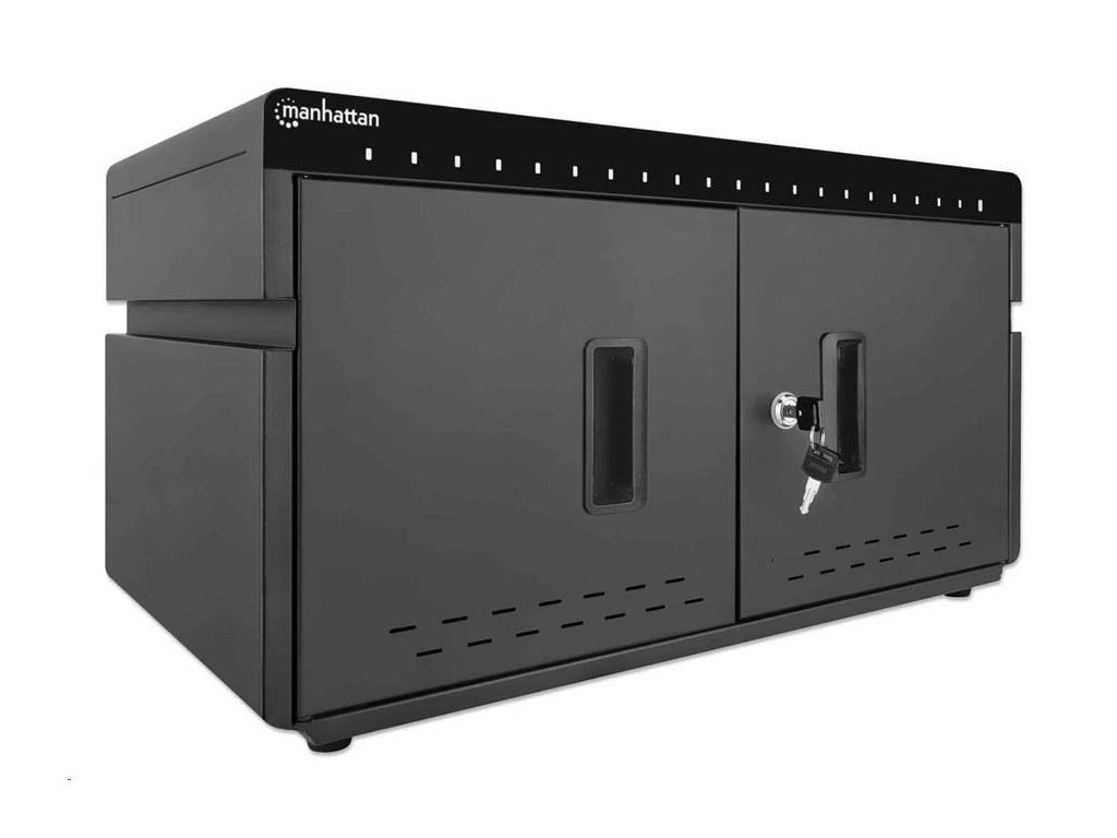 MANHATTAN stolní nabíjecí skříň - 20 portů, 360 W, přepěťová ochrana, tichá ventilace, kovové pouzdro, černá