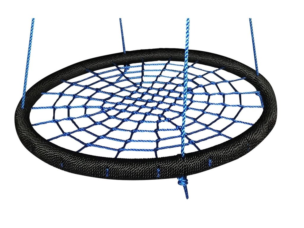 Závěsná houpačka ve tvaru kruhu je svým průměrem 100 cm a nosností až 150 kg ideální nejen pro děti, ale i dospělé. Velká sedací plocha houpačky nabízí volnost při houpání i dostatečný prostor pro lenošení. Houpačka je zavěšena na 4 délkově nastavitelných lanech, která jsou zakončena kovovými kroužky pro zavěšení na nosnou konstrukci.
