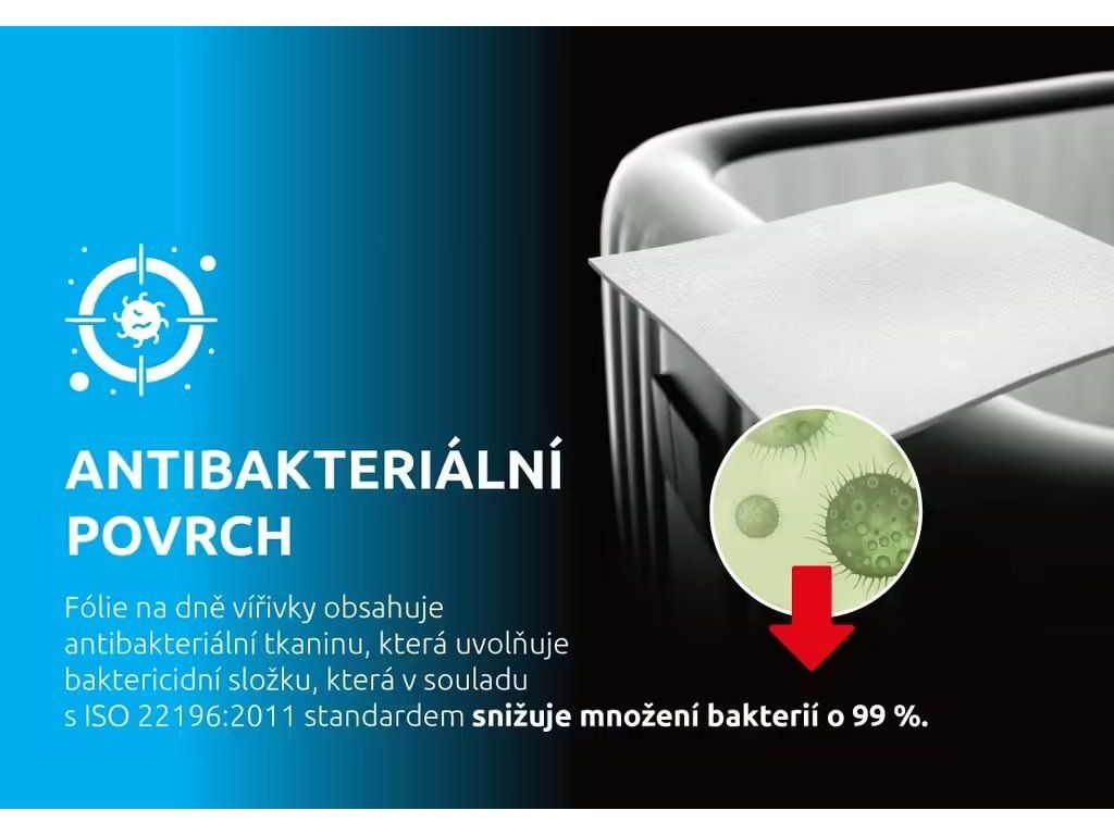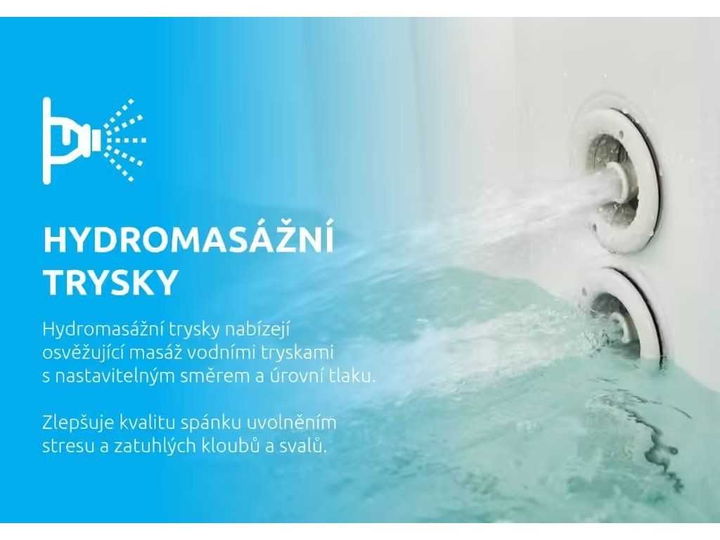 Pro příjemnou masáž je k dispozici 120 trysek a vodu je možné ohřát až na 40 °C.