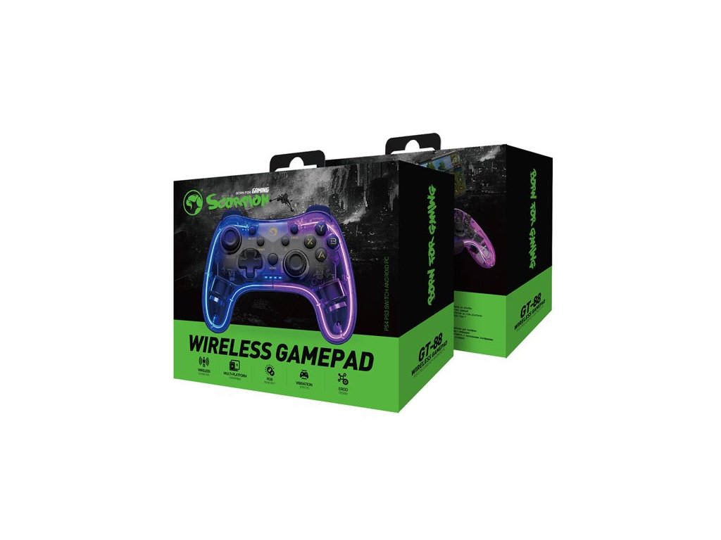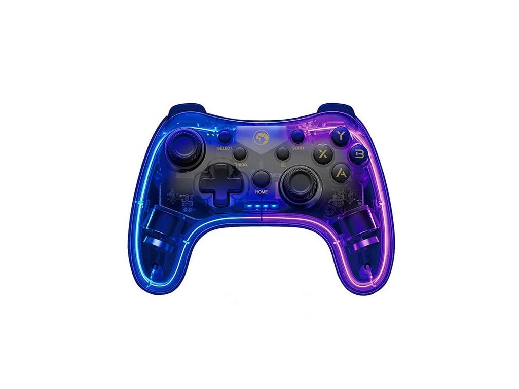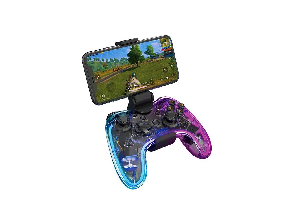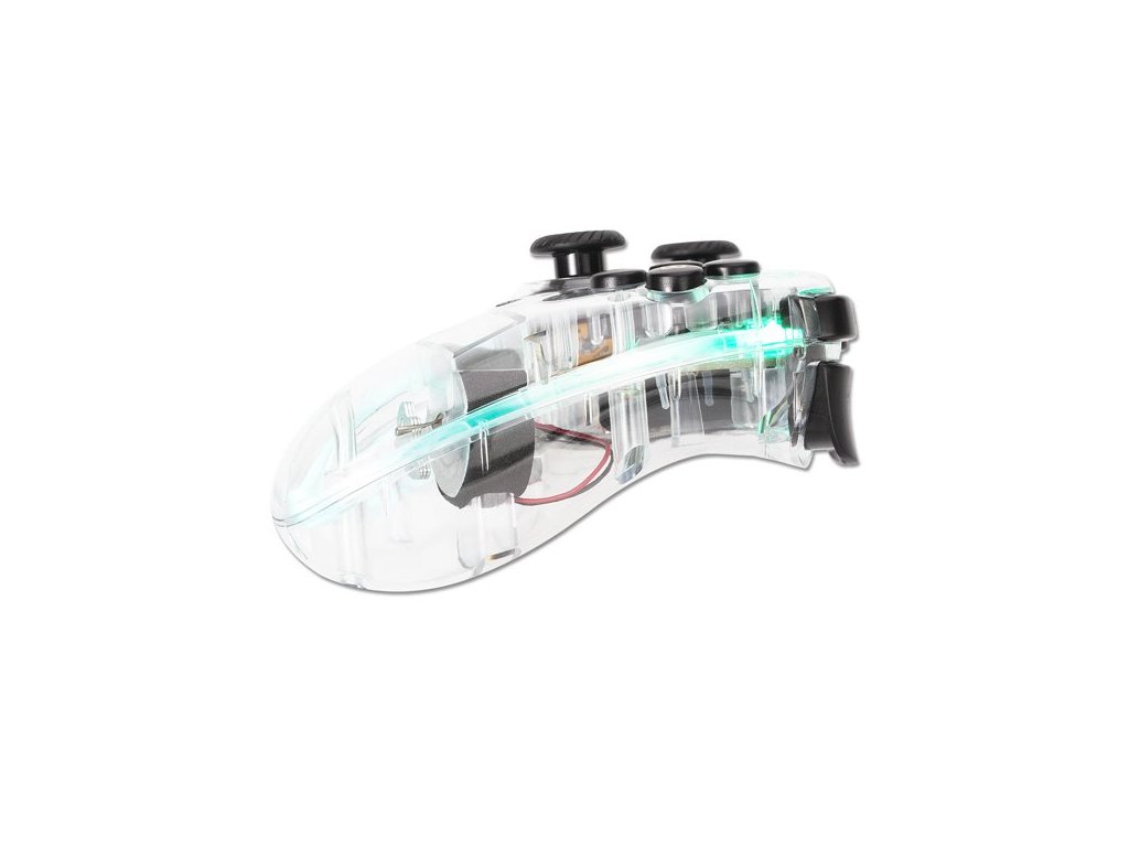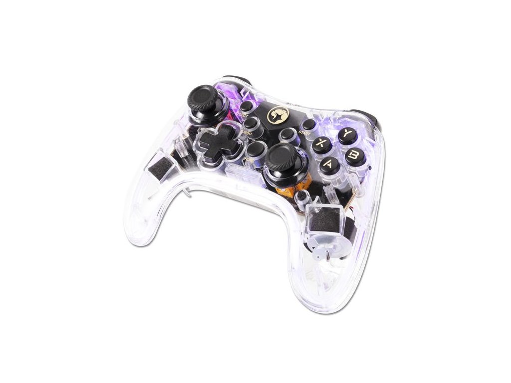 Bezdrátový gamepad, 17 tlačítek, výdrž baterie až 6 hodin, průhledný, RGB podsvícení