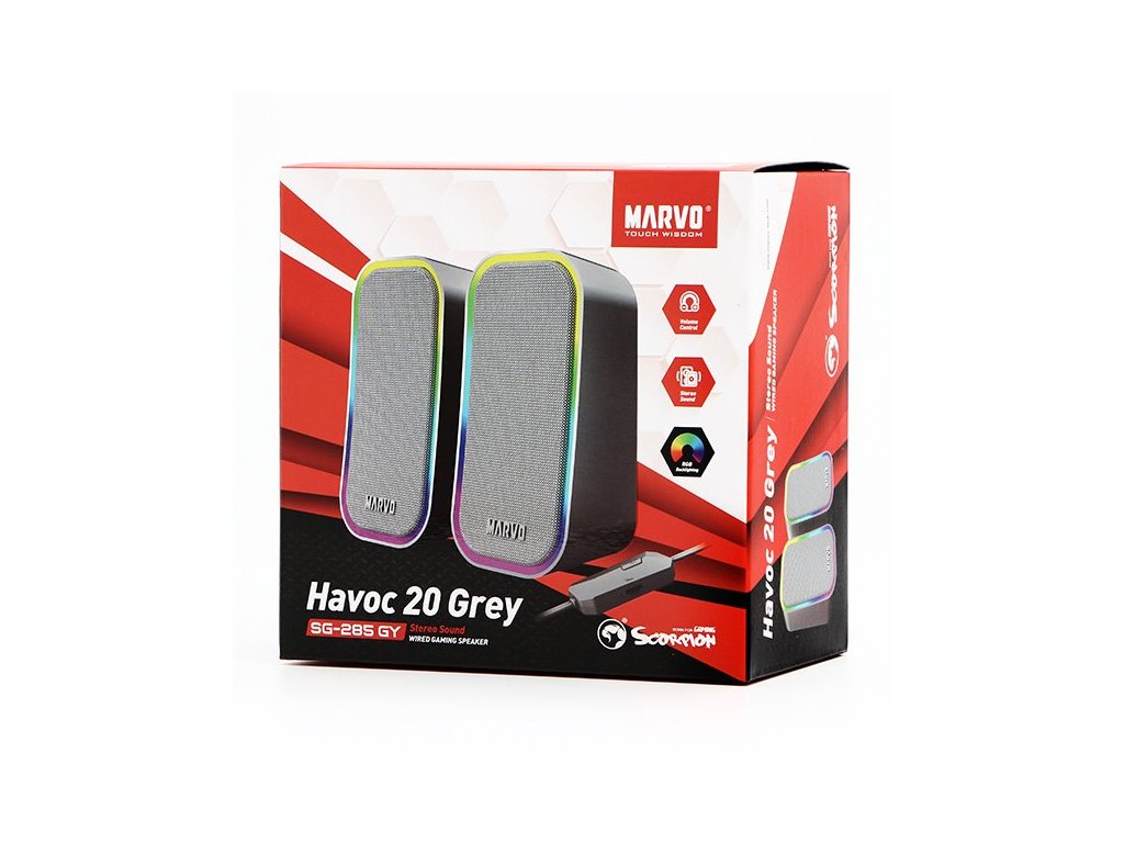 Díky kompaktním rozměrům 15,7 × 8 × 6 cm se reproduktory Marvo Havoc 20 snadno vejdou na jakýkoli stůl, polici nebo pracovní plochu. Nezabírají mnoho místa a to je činí ideální volbou pro menší kanceláře, studentské pokoje nebo herní koutky. Přestože jsou malé, jejich zvukový výkon vás překvapí.