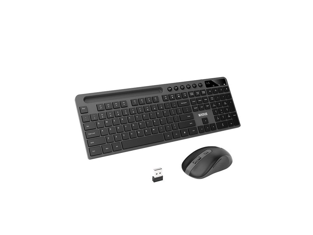 Set klávesnice a myši, bezdrátový, US rozložení kláves, stojánek pro telefon, černý