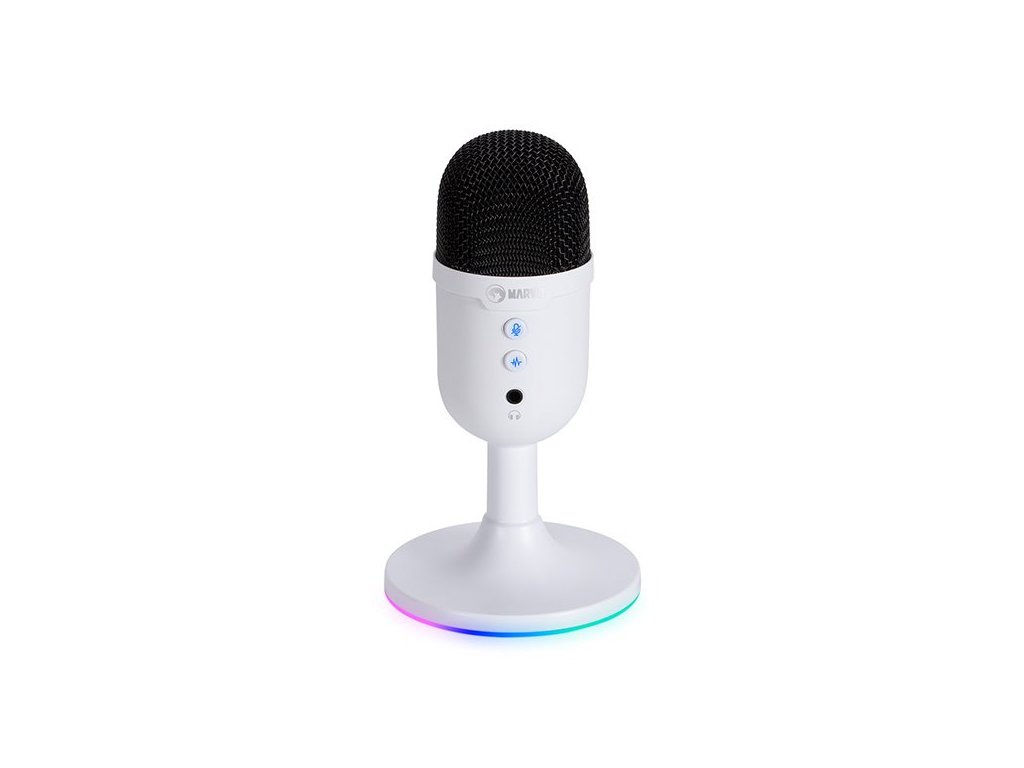 Herní/streamovací mikrofon, USB, bílý, RGB podsvícení, vstup pro sluchátka