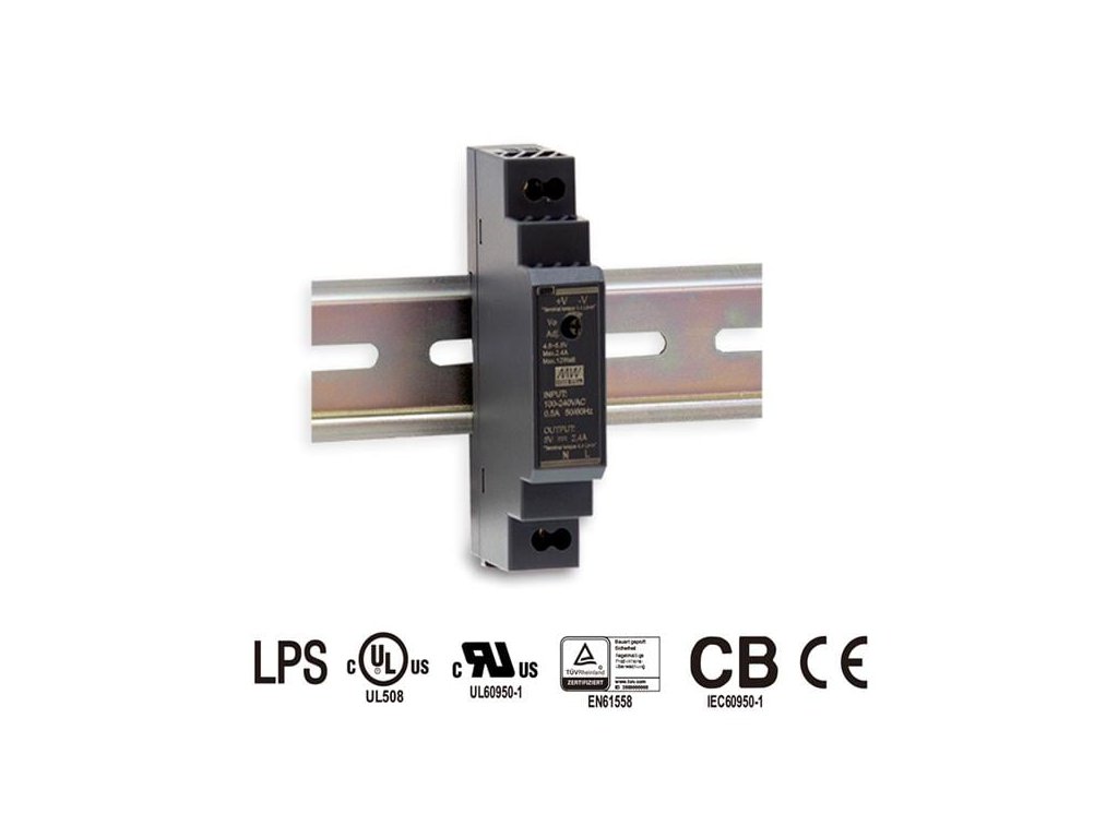 MEANWELL HDR-15-24, Průmyslový napájecí spínaný zdroj 24V 15W na DIN