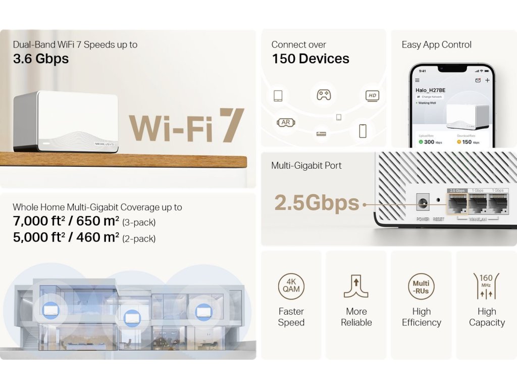 MERCUSYS Halo H27BE, Halo Mesh Wi-Fi 7 system, 2 pack
