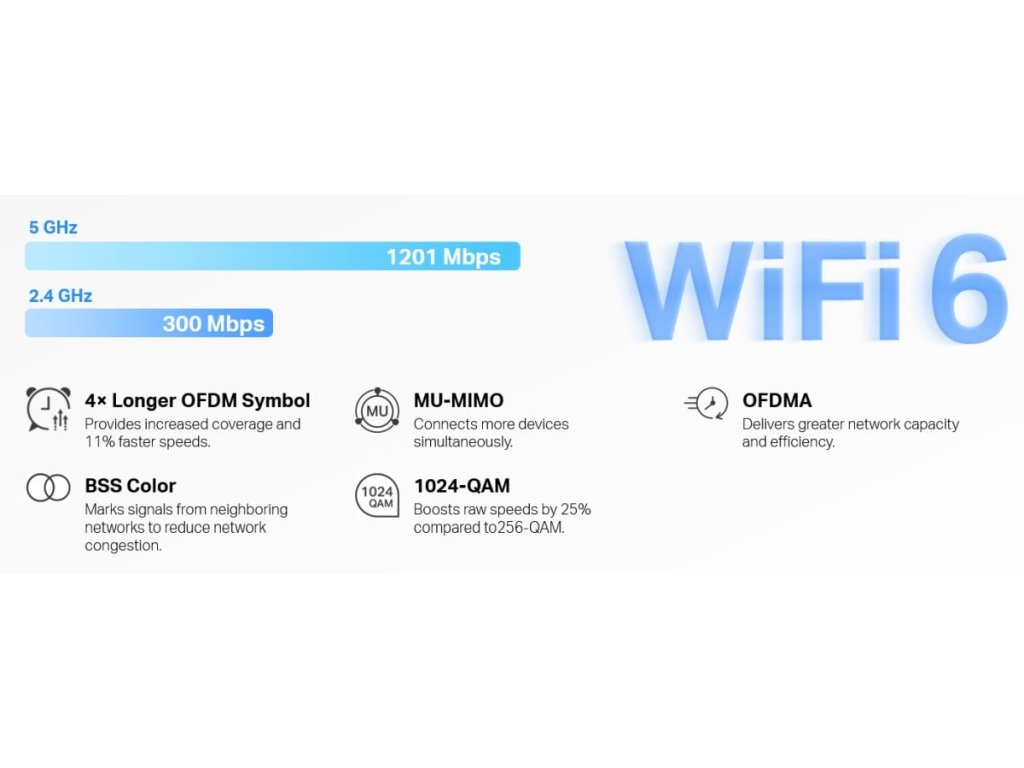 Halo H60X(2-pack)AX1500 Whole Home Mesh Wi-Fi 6 System2-pack: 1× Halo H60XR + 1× Halo H60XSSPEED: 300 Mbps at 2.4 GHz + 1201 Mbps at 5 GHzSPEC: Halo H60XR: Internal Antennas, 3× Gigabit Ports (WAN/LAN auto-sensing), 1024-QAM, OFDMAHalo H60XS: Internal Antennas, 2× Gigabit LAN Ports, 1024-QAM, OFDMAFEATURE: MERCUSYS APP, Router/AP Mode, One Unified Network, Seamless Roaming, Easy Expansion, Parental Controls, QoS, IPTV, IPv6, MU-MIMO, Beamforming, Smart Connect, TR-069, WPA3, BSS Color, TWT, ISP Preset (Agile Config), Aginet ACS