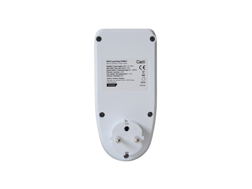 Měřič Geti GPM01 s rozšířeným designem slouží k měření spotřeby elektrické energie různých domácích spotřebičů, dokáže vypočítat odpovídající finanční náklady, kalkulovat emise CO2 za spotřebovanou energii, a poskytuje souhrnné informace o spotřebě i v dlouhodobém časovém rozpětí, včetně počítání celkové doby měření. Tyto informace Vám mohou přispět ke snížení nákladů za elektrickou energii. Ačkoliv měřič obsahuje celou řadu nastavitelných funkcí a zobrazitelných informací, jeho ovládání je snadné a displej je velmi přehledný.