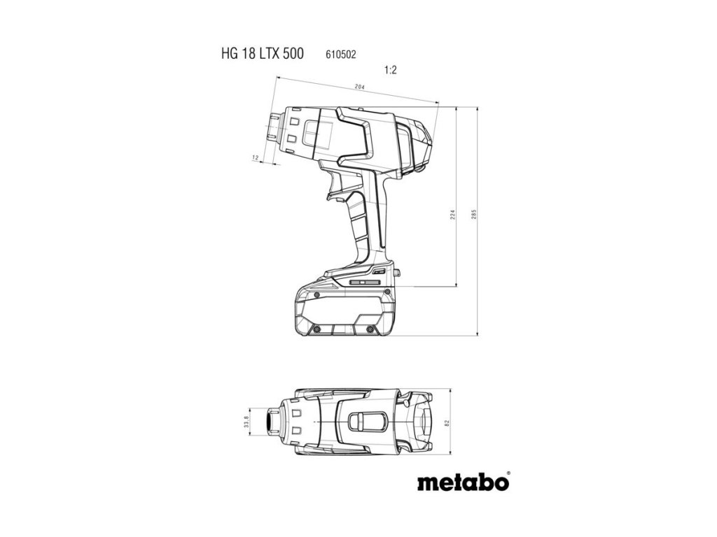 Metabo HG 18 LTX 500 Aku horkovzdušná pistole, Li-HD 18V bez aku, množství vzduchu 200 / 160 l/min, teplota vzduchu 300 / 500 °C.
