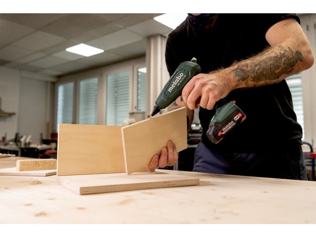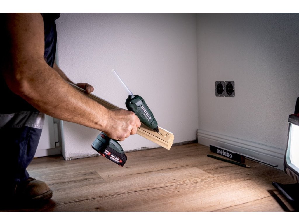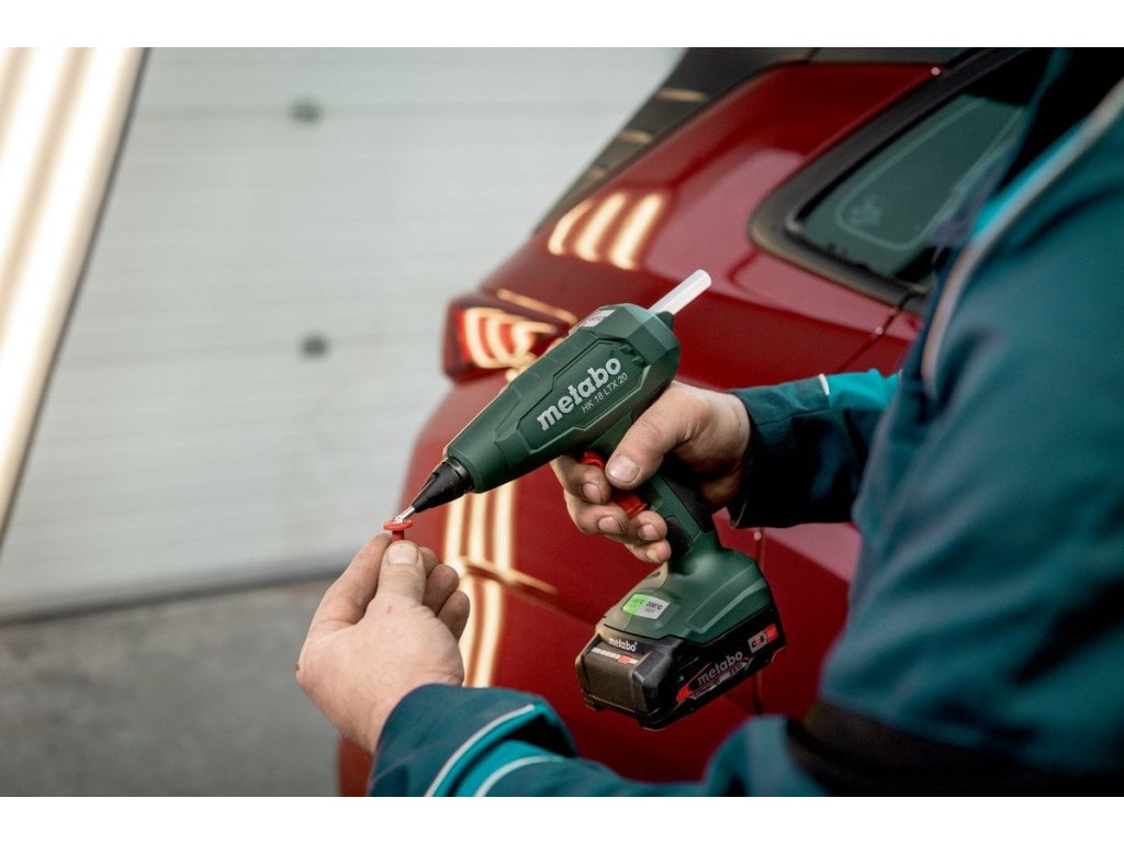 Všestranná akumulátorová lepicí pistole pro opravy a fixaci na jakémkoli místě – připravena k použití za pouhou 1 minutu.