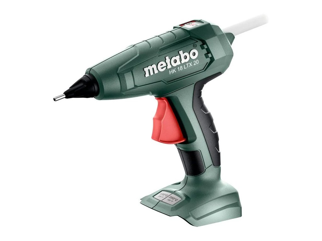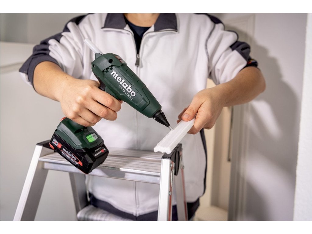 Akumulátorová tavná lepící pistole 18V, lepicí výkon: až 20 g/min, doba ohřívání:1 min, průměr tyčinky tavného lepidla:11 mm, hmotnost: 0,4 kg.