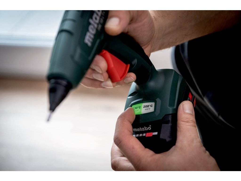Vysoký výkon akumulátoru až 13 lepicích tyčinek při nejvyšší teplotě ( akumulátorový článek Li-Power 18 V/2 Ah).
