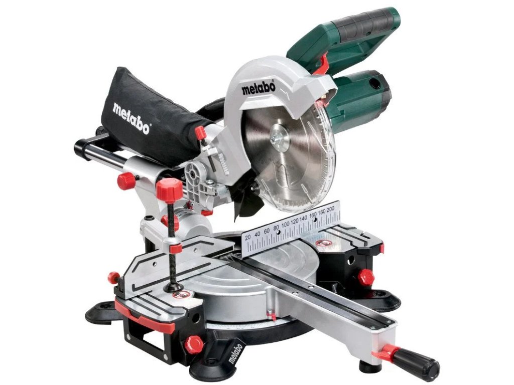 Metabo pokosová pila KGSV 216 M. Dosedací plocha: 345 x 730 mm, pilový kotouč 216x30mm, jmenovitý příkon 1350 W, max. šířka řezu 90°/45° 305 / 205 mm, max. hloubka řezu 90°/45°:65 / 36 mm.