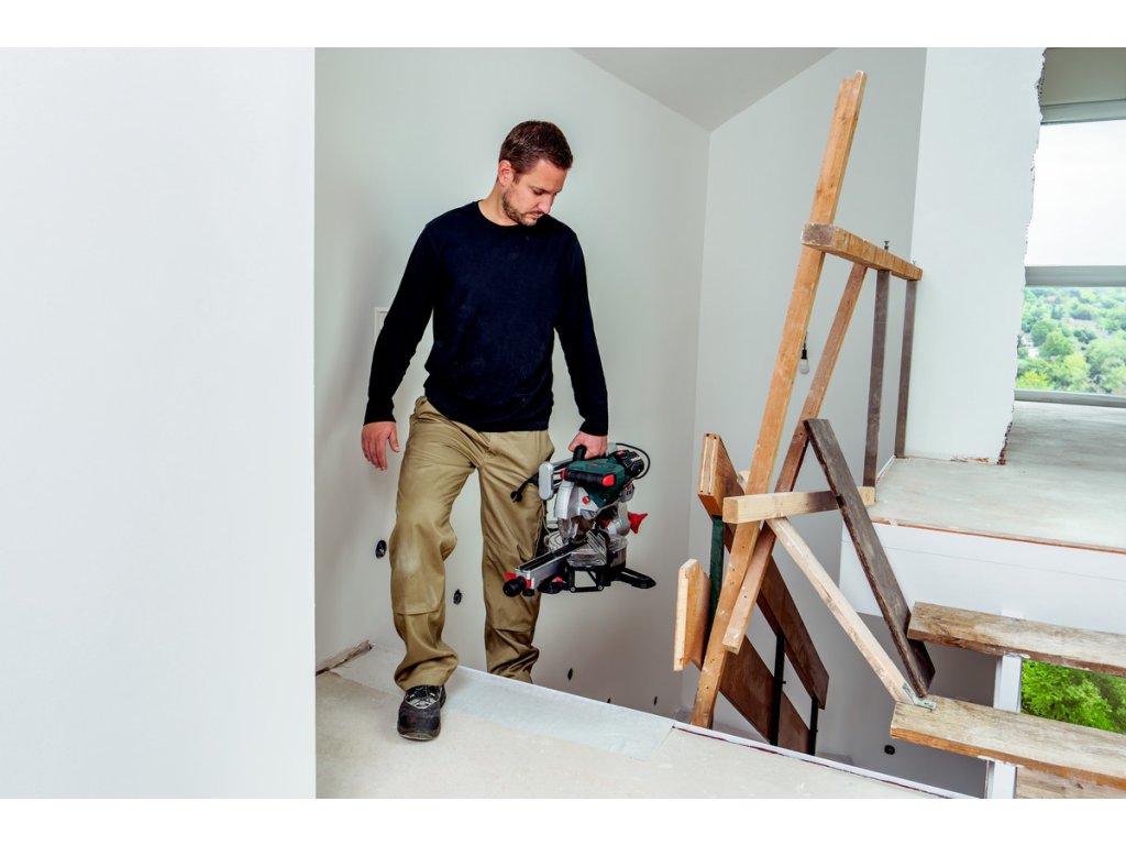 Pokosová pila s pojezdem s maximálním vybavením: variabilní otáčky, funkce kompaktního pojezdu, oboustranný náklon hlavy pily. 1600W, 2200 - 5300 ot./min., prořez 90°/45°:70 / 40 mm.