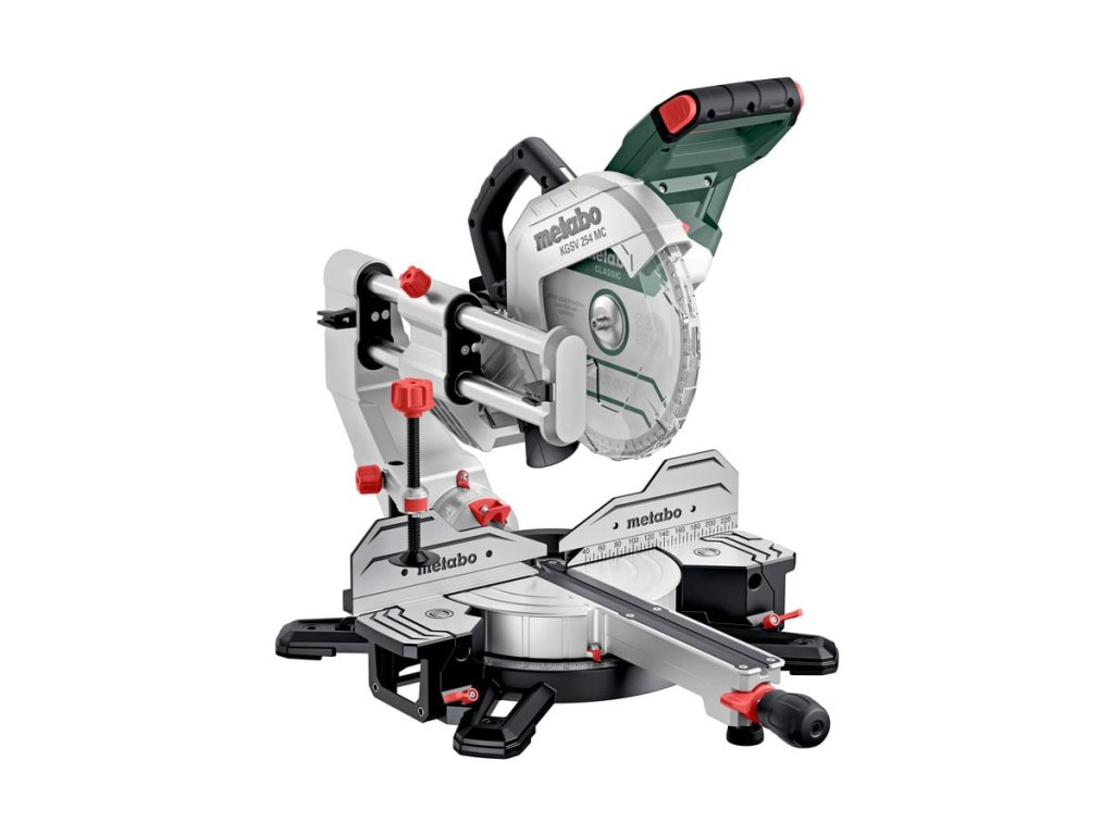 Pokosová pila s pojezdem s maximálním vybavením: variabilní otáčky, funkce kompaktního pojezdu, oboustranný náklon hlavy pily. 1800W, 1900 - 4500 ot./min., prořez 90°/45°: 92/48 mm.