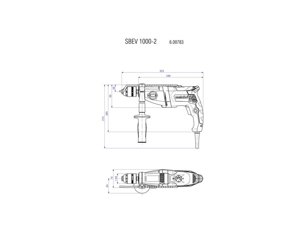 Příklepová vrtačka. Kolečko pro nastavení předvolby otáček. Jmenovitý příkon 1010W, odevzdaný výkon 540W, Max. točivý moment 40/14 Nm, rozpětí sklíčidla 1.5 - 13mm.