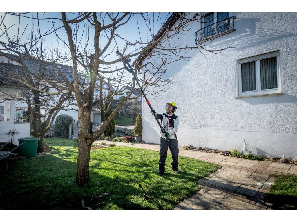 Kombinaci teleskopické tyče MS a akumulátorové prořezávací pily MS 18 LTX 15 lze použít jako vysoký prořezávač pro péči o stromy.