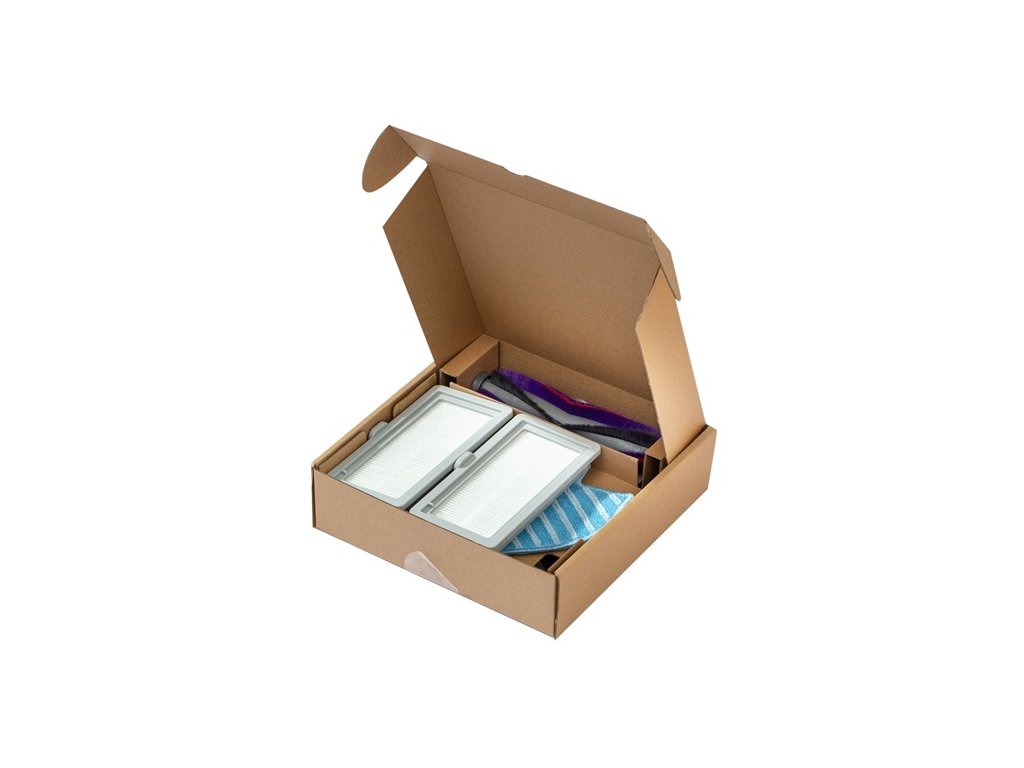 Boční kartáč 2 páry, Čistící kartáček 1 ks, HEPA 2 ks, Mopovací textílie 1 ks, Hlavní kartáč 1 ks